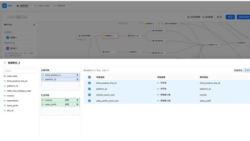 1.数据源与数据流(FSO-ETL):多类型数据源管理(MySQL、PostgreSQL、Oracle、Excel、CSV 等),数据流可视化配置与发布,支持手动执行与 XXL-Job 定时调度,元数据自动发现,文件解析与导入,并与告警中心联动推送任务执行结果。