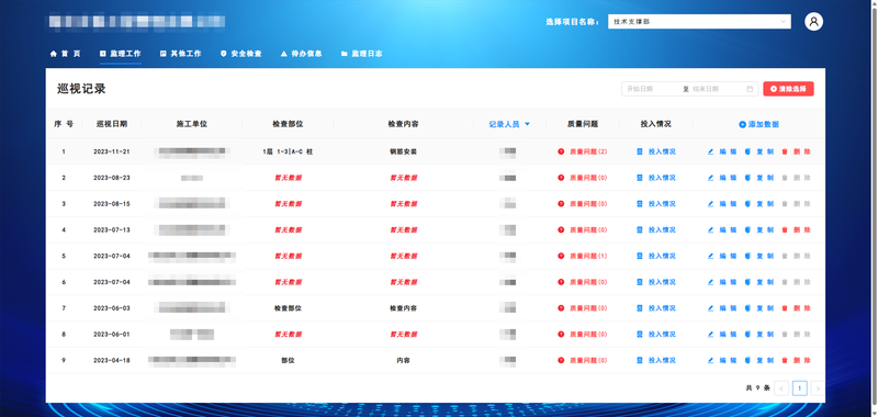 全流程数字化闭环:打通监理从施工准备、现场巡检、问题整改到竣工验收的全生命周期业务,实现任务派发 - 现场上报 - 整改验证 - 资料归档的数字化闭环,替代传统人工操作,提升监理工作效率。