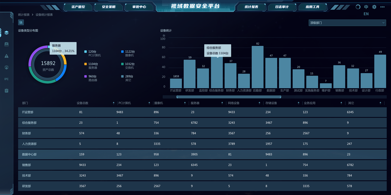 单独对资产设备进行数据安全的整体把控。整体对数据进行统计,生成报告等,涉密级别仅展示效果图。