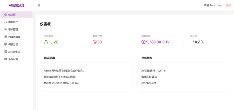 系统实现了完整的“获客 -> 识别 -> 分配 -> 转化 -> 分润”闭环: