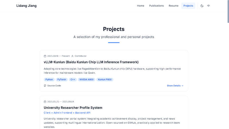 部署效果参考: https://lidang-jiang.github.io/