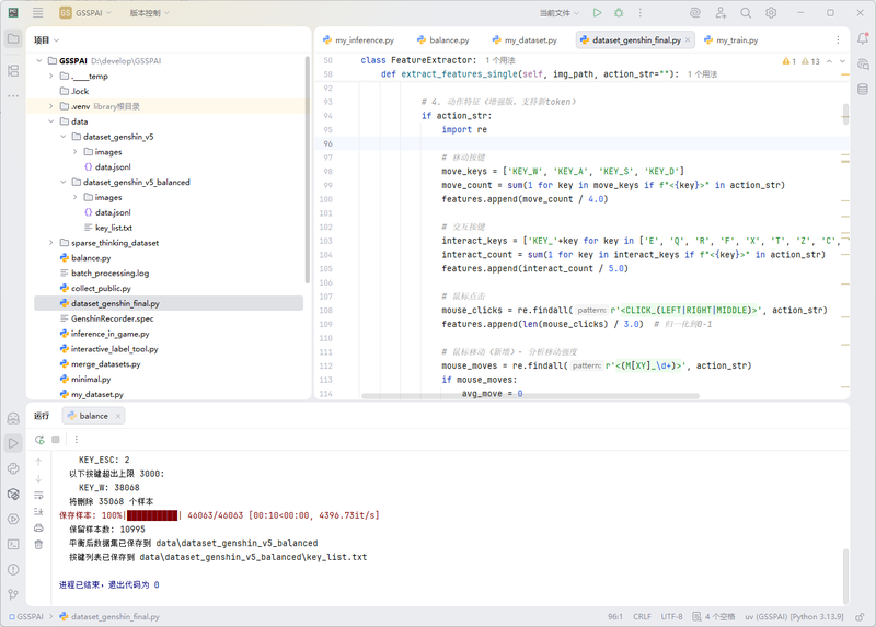 3、场景分割脚本:(此为游戏代肝部分)实现了多线程特征提取、多维度轻量特征(画面亮度分布、HSV颜色直方图、边缘密度、动作特征)整合、多线程数据保存。
