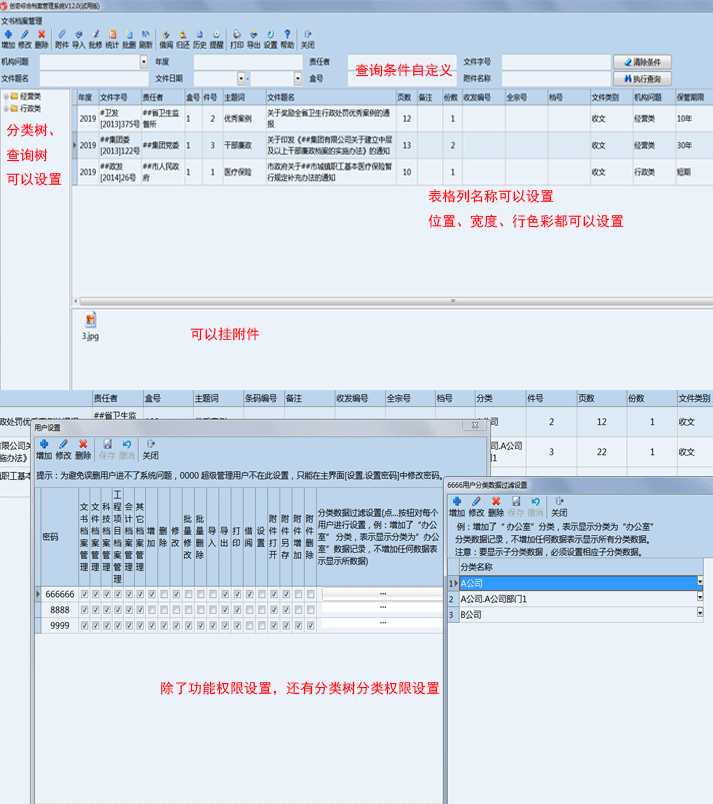 3.档案管理软件条目名称、界面、表格都设计非常灵活,支持用户定义,可以满足单位一些特殊类档案的管理。