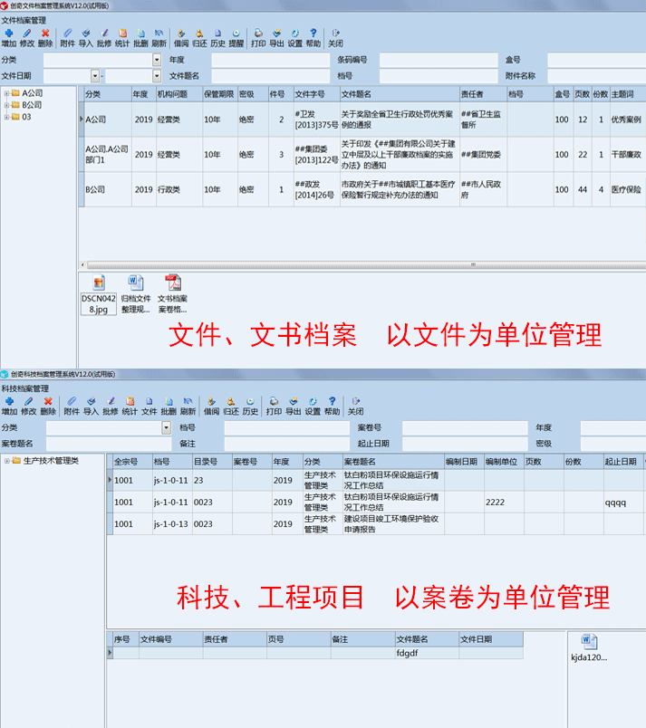 档案是单位的重要信息资源,档案管理软件应用是档案管理创新的重要方面。单位应采取有效措施,加大投入,确保单位档案管理信息资源的完整、安全和有效开发利用,全面推动单位档案管理向更高层次发展。创奇档案管理软件专注于档案管理软件开发研究已十多年了,产品成熟稳定,购买用户遍布全国各行各业,创奇文件档案管理软件得到了档案专业教材《档案管理技能训练》实例介绍与推荐。www.cqdagl.com