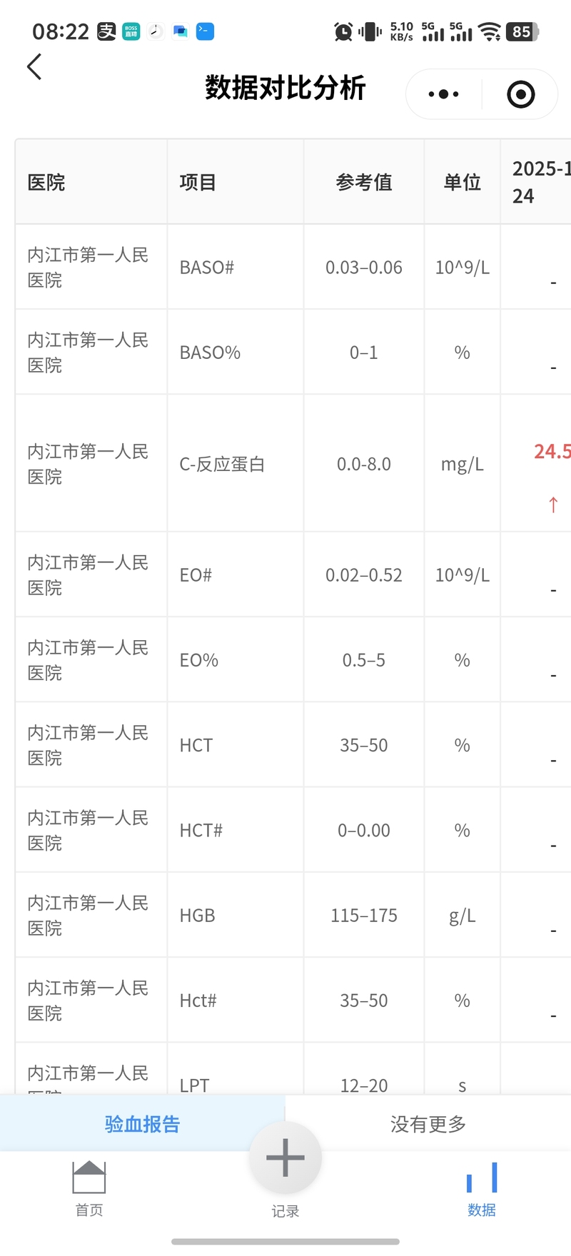 立项原因:帮助常常需要做检查的生病人员记录自己的病情,可以按时间线快速查看,上传的报告图片可自动采集数据,并可按日期对比分析。
