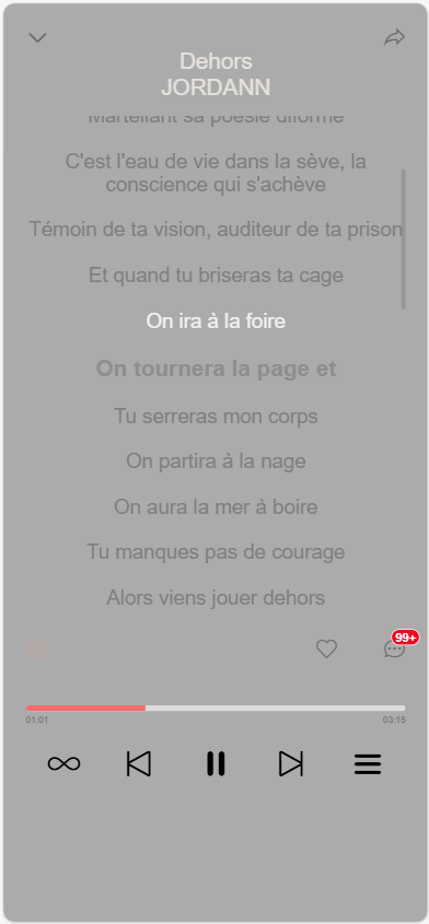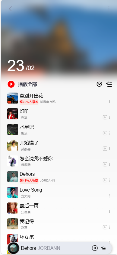 音乐播放控制:支持播放 / 暂停、上一曲 / 下一曲、进度条拖动等基础操作。