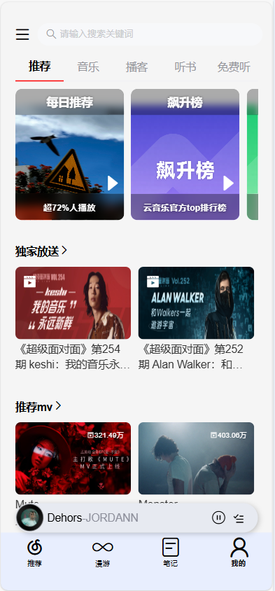 数据模拟:使用 Mock 数据模拟歌曲列表、歌单信息及用户行为数据,确保在无后端环境下可完整演示功能流程。
