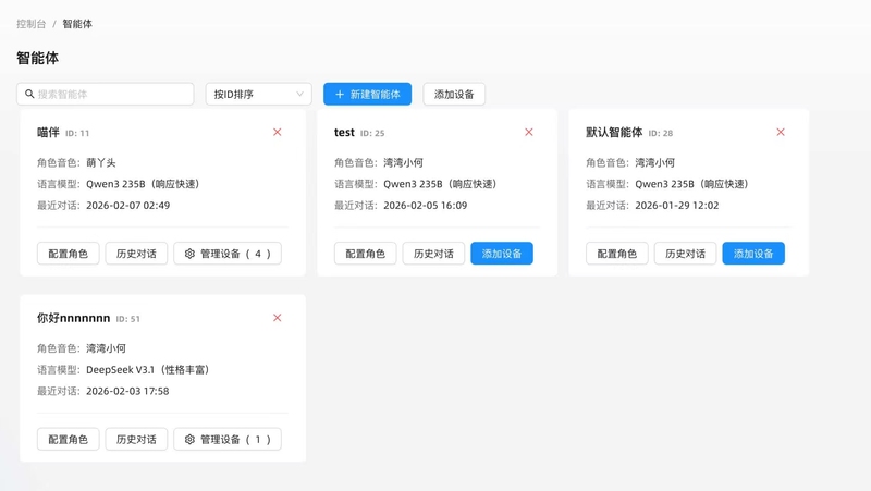 4. 实现设备管理,大模型管理,用户管理,智能体管理等;