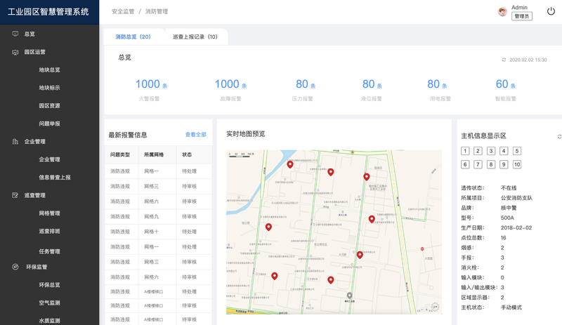 面向园区运营方与安防管理人员的后台管理系统,为园区大屏监控提供车辆、安防、人员、能耗等业务数据的配置与维护;支持账号与权限管理、海量数据导出(10W+)、大文件上传(分片/断点续传),用于园区日常运营、事件处置、数据统计与可视化展示。