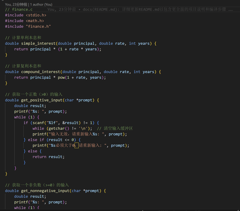 v3循环菜单版引入do-while菜单和函数封装,支持多次计算并统计次数;进阶模块化版本将金融计算(单利、复利)与输入验证分离为独立函数,通过头文件/源文件组织,并编译为静态库供主程序调用。各版本均提供友好的命令行交互和详细注释。