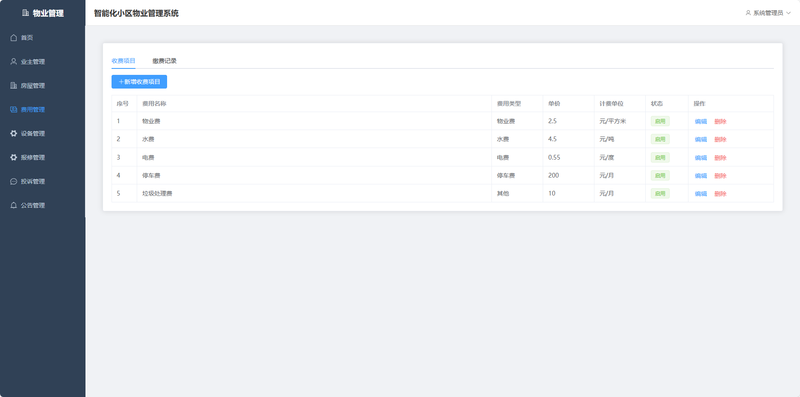 2.物业收费管理模块:支持物业费、水电费、停车费等各类费用的核算、收缴、查询,生成缴费通知单和收费统计报表;