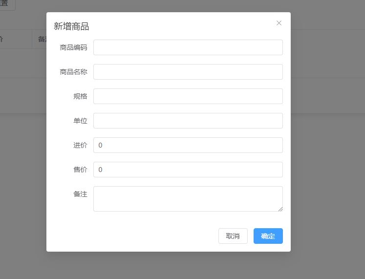 1:商品模块:添加主要商品,也可用于原料记录