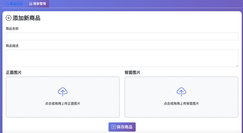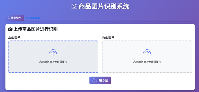 主要功能有两块。1:用户上传商品图片后进行识别。识别出是否为商家的商品。 2:商家上传自家的商品图片,以便跟用户的图片进行比对。 商品图片的比对逻辑是通过AI大模型来进行比对。
