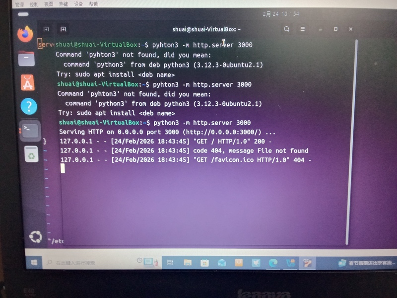 1. 使用Python快速搭建一个简易后端服务,监听3000端口。