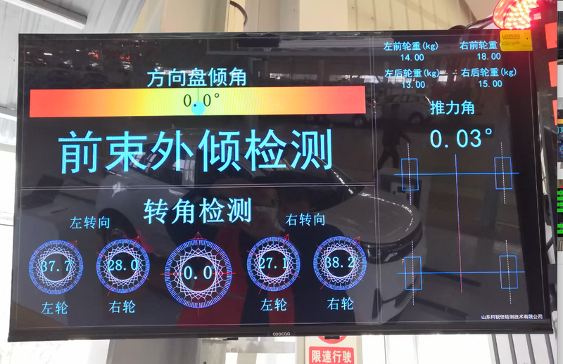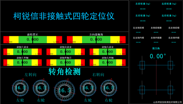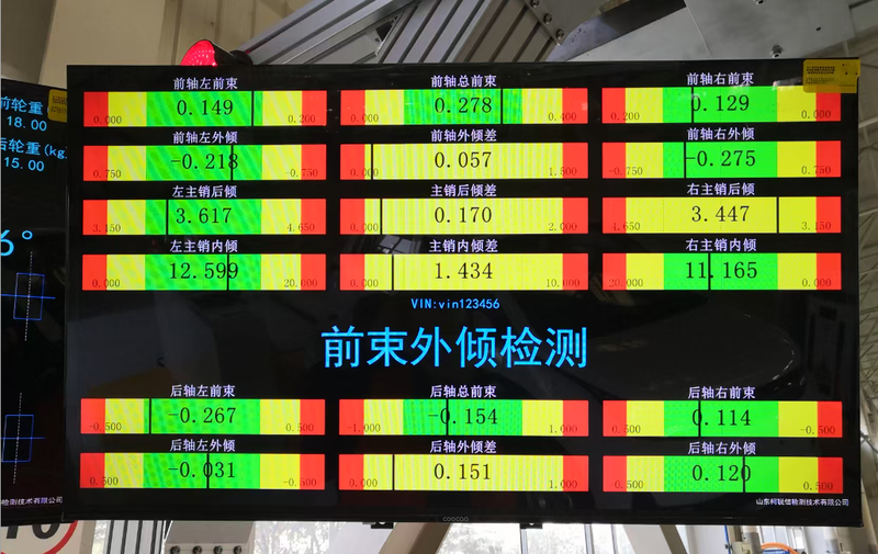 汽车总装下线后汽车各轴轮胎的前束、外倾、主销等结构因装配误差,需要对其进行检测及调整。此设备可以实时监测汽车轮胎的前束、外倾值,并协助工作人员快速对轮胎的前束外倾的结构进行快速调整