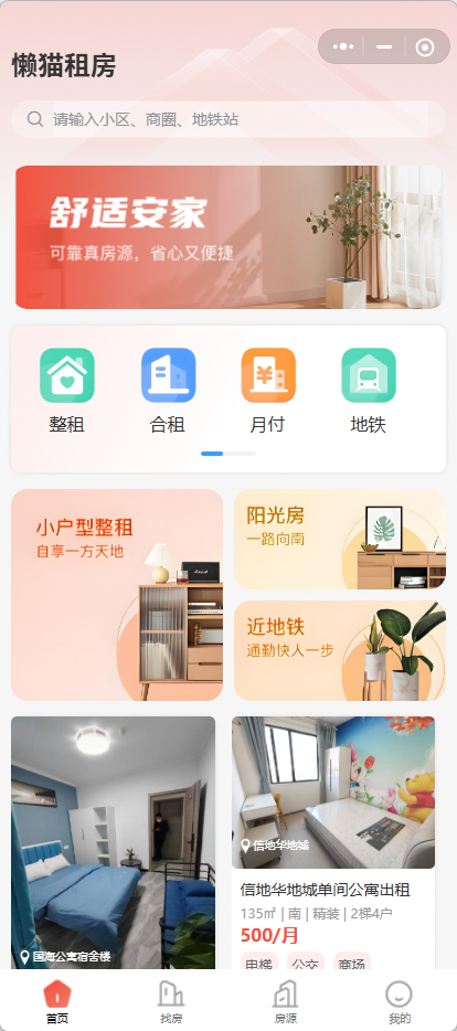 随着城市租房市场的不断扩大,租客在找房过程中普遍面临信息繁杂、筛选效率低、房源真实性难以核实等痛点,同时房东也存在房源曝光率不足、管理流程繁琐的问题。懒猫租房项目正是针对这一行业现状,旨在打造一个集真实房源展示、智能筛选、在线沟通、租房管理于一体的租房服务平台,通过数字化手段优化租房全链路体验,解决传统租房模式中信息不对称、交易不透明等核心问题,为租客和房东提供更高效、便捷、安全的租房服务。
