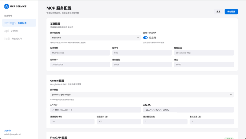 同时提供 MCP 标准工具注册、统一返回格式、配置管理、重试与超时控制、文件落盘与静态访问能力。