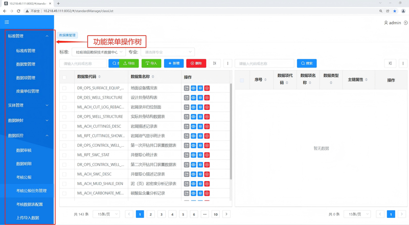 标准管理:创建新标准库,标准数据项,根据业务需求,管理并定义标准数据项名称、数据项类型、数据项单位,生成标准的数据集名称及其数据集字段。 实体管理:系统管理的实体对象类型、实体检索及其关联关系。 数据映射管理:该模块提供数据映射任务管理、映射转换管理、映射日志和映射调度功能。 数据质控:包含数据审核、数据明细和考核公报三大部分。