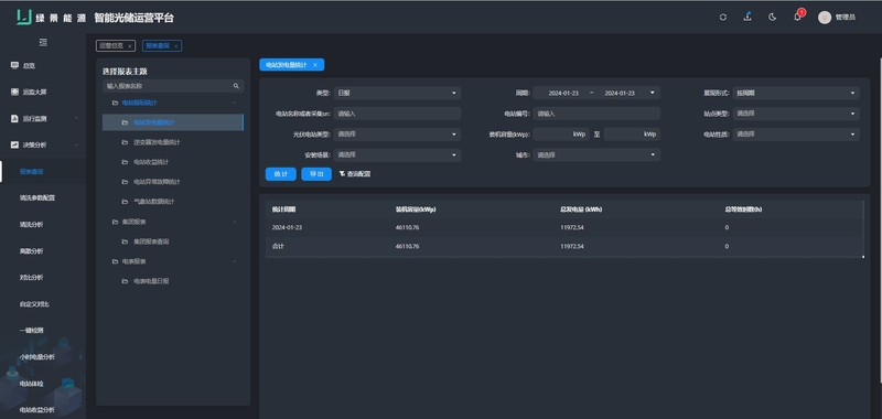 发电量:支持日、周、月、年等多维度统计。