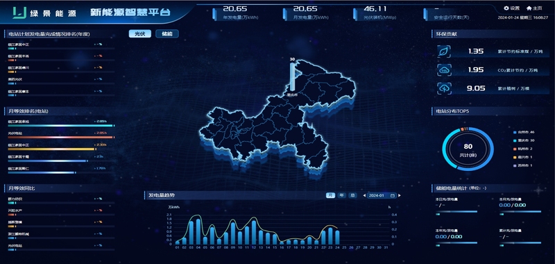 作为可视化监控中枢,以大屏形式集中呈现电站整体运行态势、核心数据与告警信息,提供直观高效的监控视角。