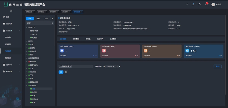 电站监测:对单个电站进行深度监测,覆盖功率、发电量、设备状态及告警等全维度数据。