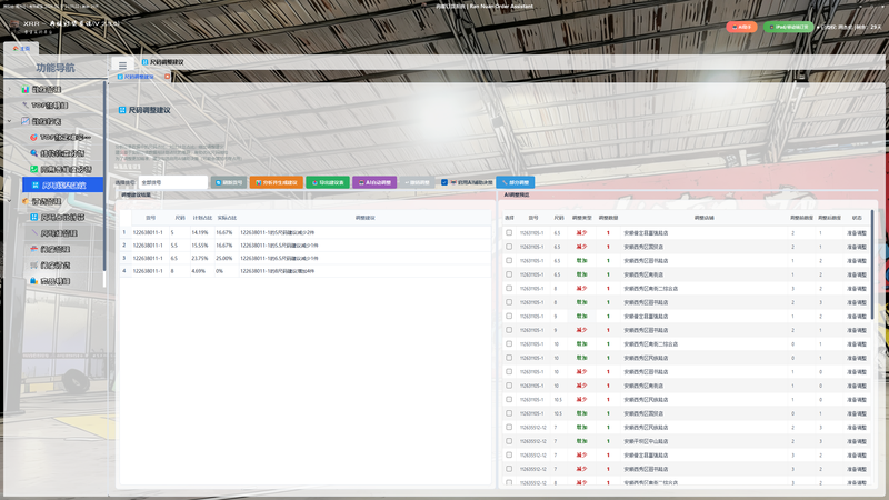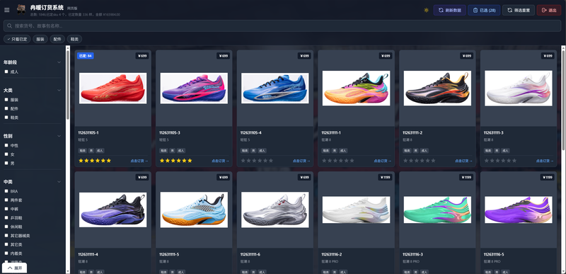 行业痛点 本项目解决方案 数据滞后 实时汇总各门店订单数据,支持高并发下的实时库存扣减与报表生成。 尺码配比难 内置 智能尺码计算器 (RatioCalculator) 与 AI 辅助决策 ,根据历史销售数据或预设模板自动推荐尺码配比。 手工易错 提供二维矩阵式(SKU Matrix)下单界面,自动校验尺码组与价格,减少人工录入错误。
