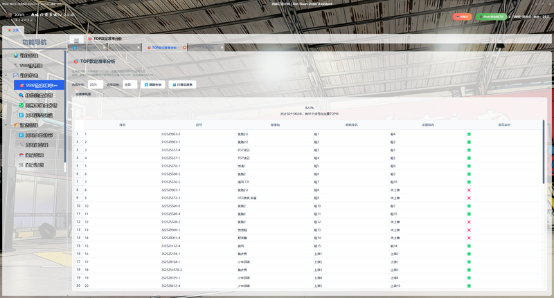 - TOP 款分析 :自动生成订货量前 N 名的商品列