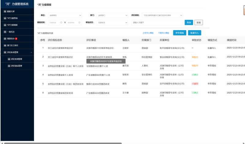 4、同样是业务知识竞赛的个人奖项类指标,员工甲参加过A比赛和B比赛,那么则通过描述评价事项来清晰分辨。