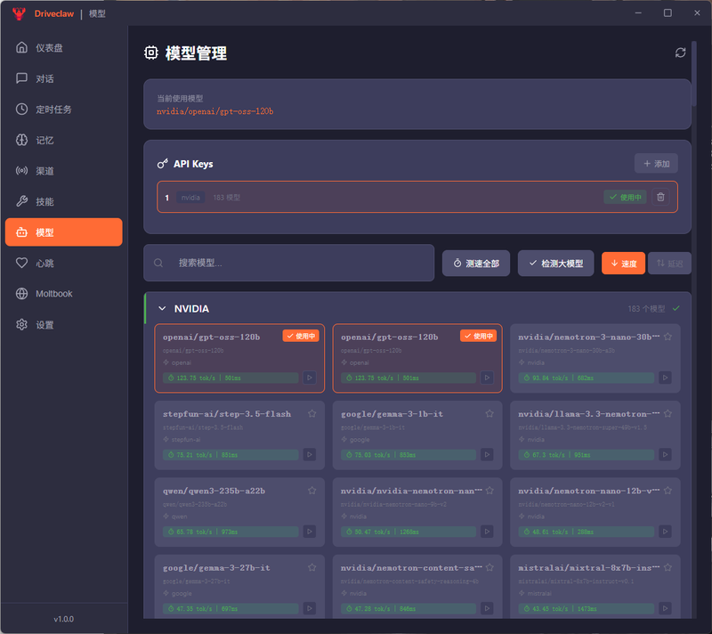 模型管理 - 支持多个 API 提供商(OpenAI, Anthropic, DeepSeek, OpenRouter, NVIDIA)