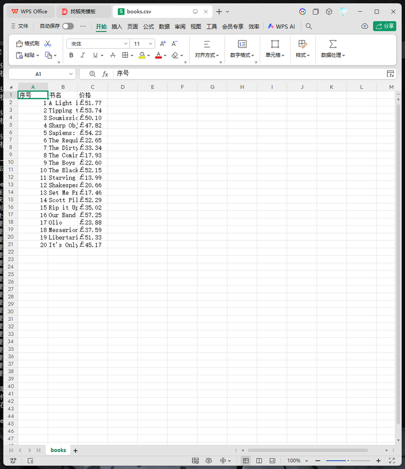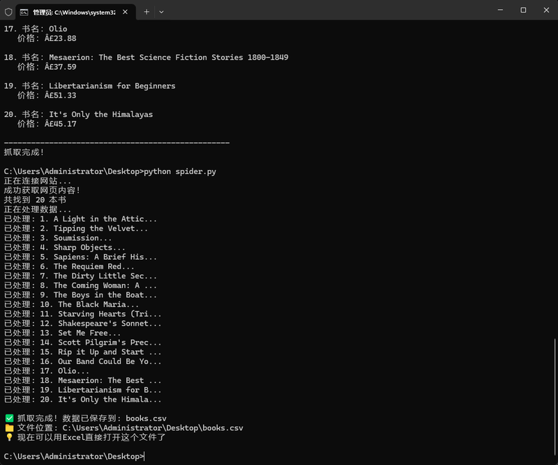 4. 数据存储功能:将抓取到的书名和价格保存为CSV格式文件,可直接用Excel打开。