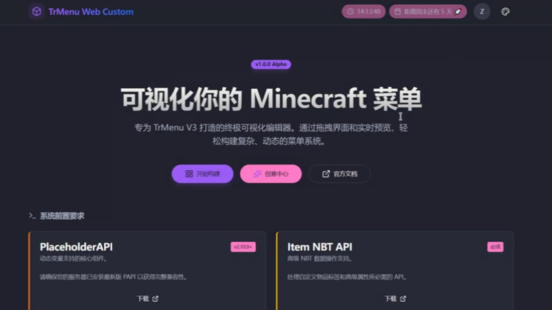 TrMenu Web Custom 是专为 Minecraft 高级菜单插件 [TrMenu V3](https://hhhhhy.gitbook.io/trmenu-v3) 设计的在线可视化配置工具。