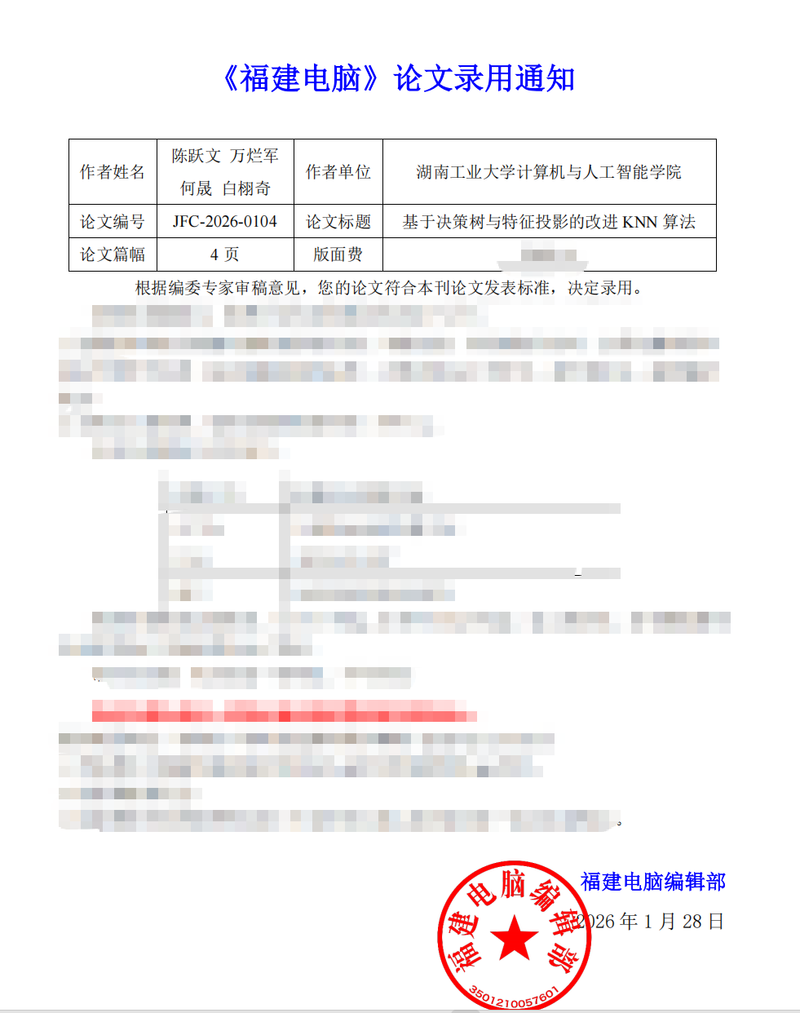 4. 论文撰写:独立完成全文写作与修改,已被《福建电脑》录用。