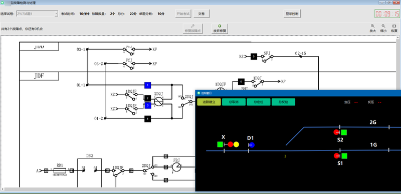 道岔转辙机实训软件可以进行理论练习、道岔控制电路故障检测与处理、调试导通的实作及考评。支持库的输入、修改、查询、删除等功能;能够根据设置,自动生成标准的考试试卷。学员练习训练或竞赛时通过实训系统进行答题,答题完成后提交试卷自动评分