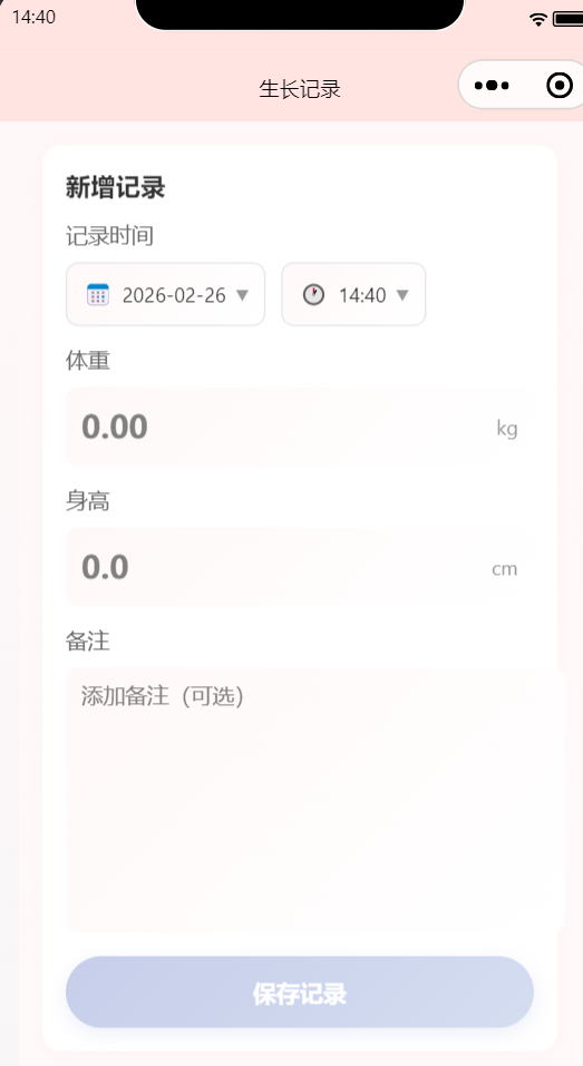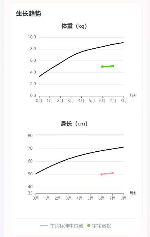 7:添加生长记录,记录身高体重变化,并与百分位数值对比