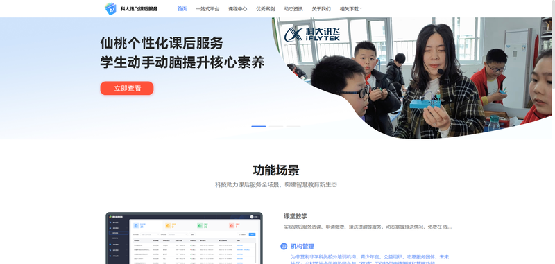 科大讯飞课后服务平台立足“平台+课程+服务”提供一站式课后服务综合解决方案,致力于为广大学生提供“线上”+“线下”高效课后托管服务,推动智慧教学模式,打造智慧课堂,赋能学校、老师、学生三方,实现师生减负增效。