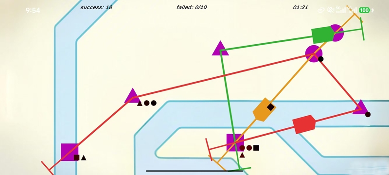 2.站点间可连成线路(初始上限3条,后续可通过道具增加),线路有不同颜色区分,可延长可缩短可删除可形成环形可解开环形。