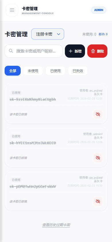 严密的会员机制:采用卡密注册模式,配合“设备锁”技术(一个账号只能一台手机用),保护了创作者的版权和运营者的收益。