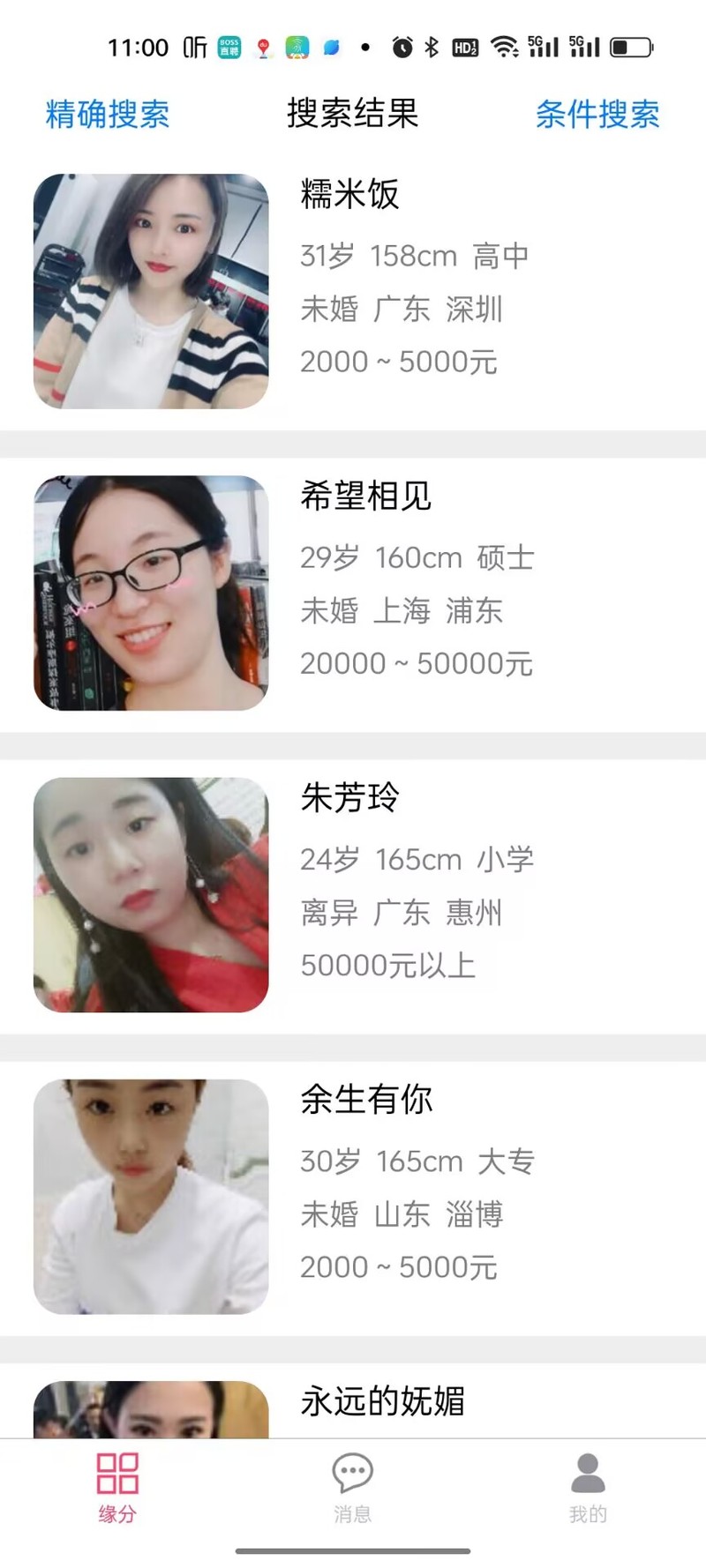 地区、年龄、身高、学历、收入、婚史、有无孩子