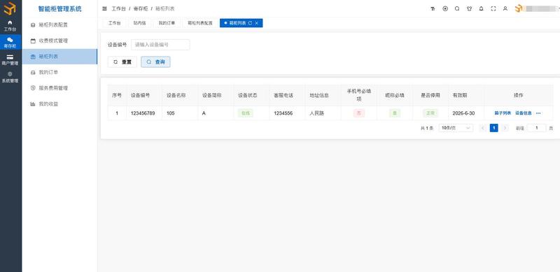 功能概述:用于管理所有柜体设备的基础信息、状态监控及物理配置。