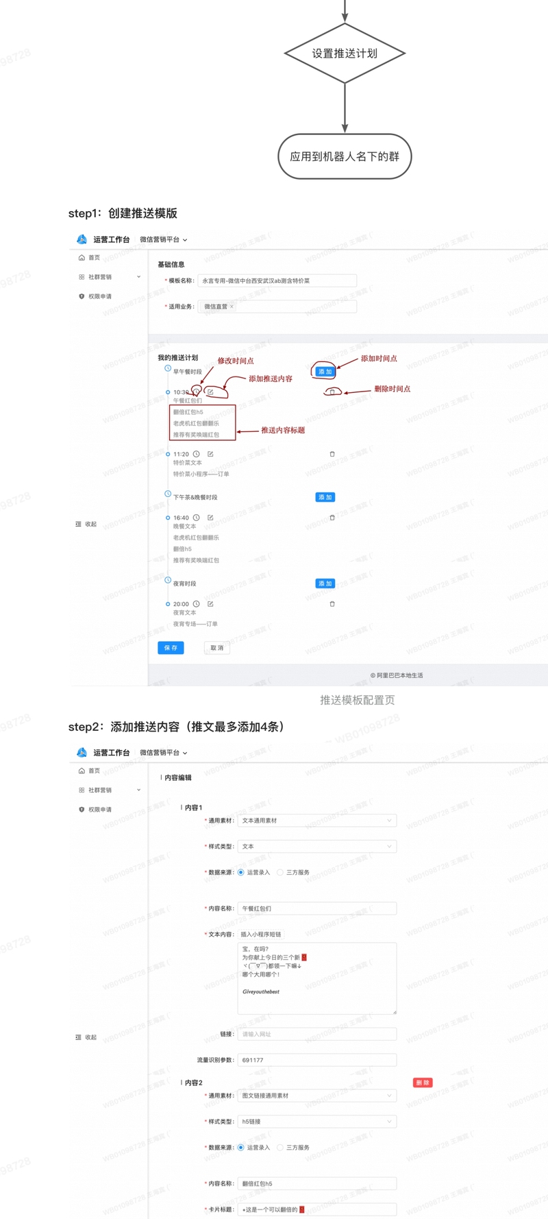 推送素材多样化支持:通过Cron表达式,实现素材与推送任务的一对多、多对一灵活关联,用户可为同一素材设置多个推送周