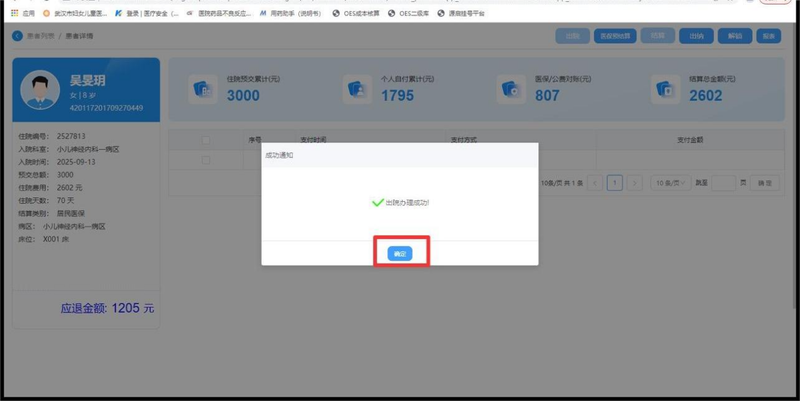 5.出院办理完成后自动开具电子发票,并打印出院结算凭证