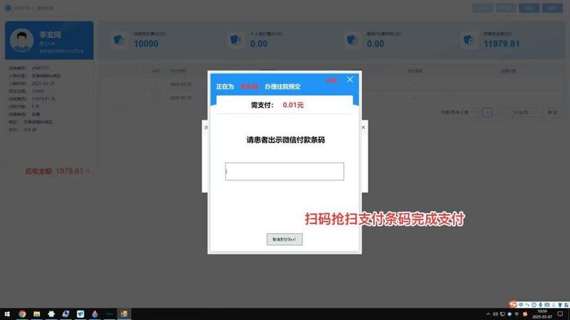 3.补费方式出院结算-唤起本地支付(包含微信和支付宝主扫模式支付)