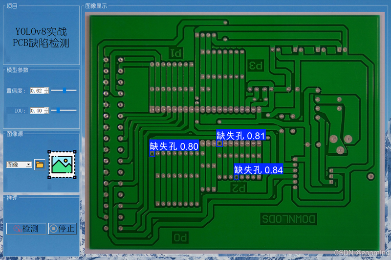 2.支持图片、视频及摄像头进行PCB板缺陷检测,同时支持图片的批量检测;