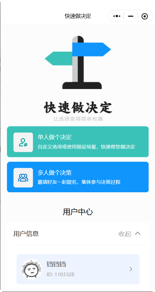 在快节奏的现代生活中,无论是个人日常还是团队协作,“选择困难”已成为一种普遍现象。我们常常在“吃什么”“去哪里玩”“如何安排活动”等琐事上耗费大量时间与精力。在多人参与的场景下,传统的沟通方式效率低下,微信群聊刷屏、反复确认、统计繁琐,如何公平、高效地收集意见、达成共识,成为一大痛点。“快速做决定”应运而生,旨在通过简化决策流程,降低选择成本,提升生活效率。本软件聚焦于“轻量级决策”场景,覆盖个人随机选择、朋友聚会投票、团队活动策划等高频需求,让用户快速摆脱选择困境。