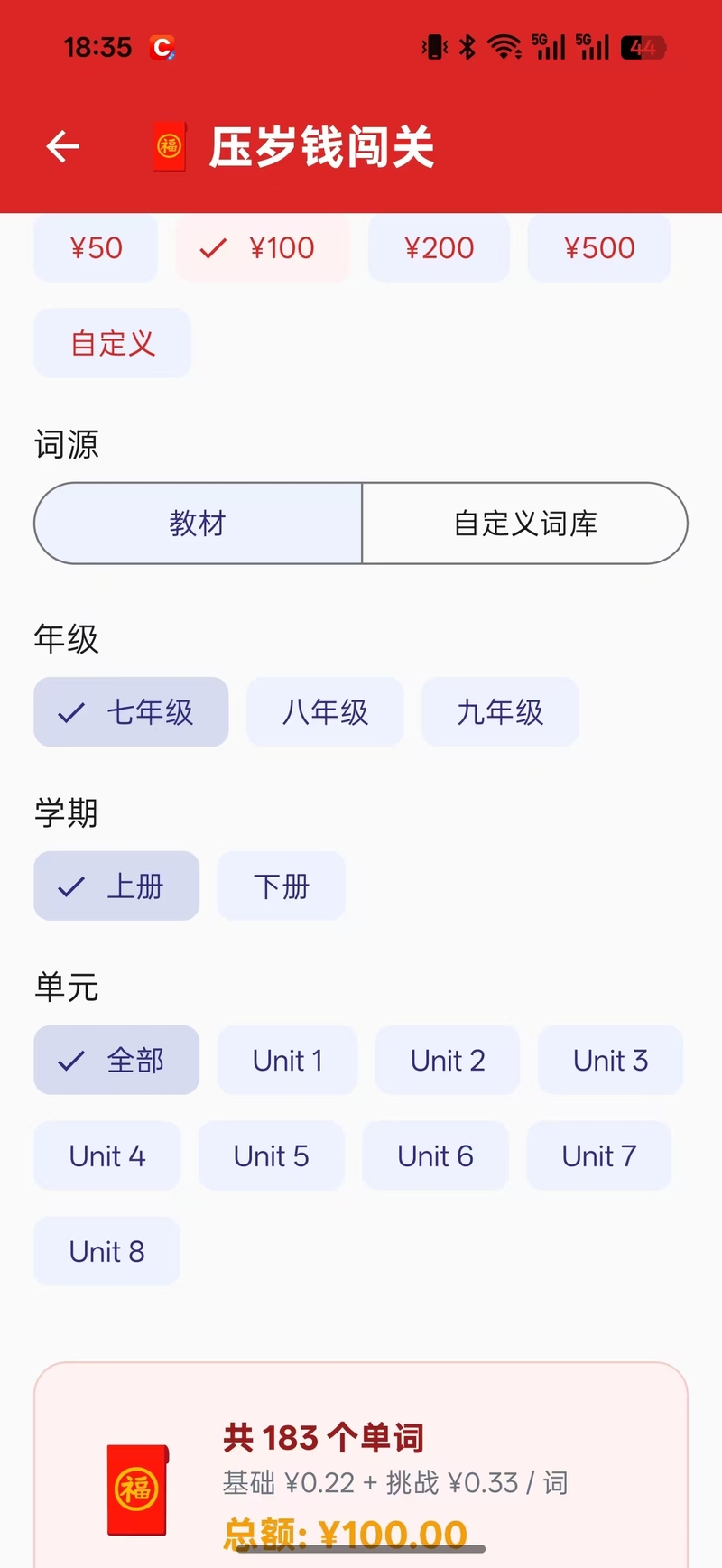 1. 词汇库管理模块:支持内置词库(CET4/CET6/考研/托福/雅思等)和用户自定义词库导入,用户可按需选择学习计划。