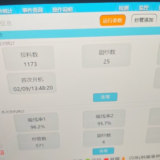 两台视觉提升机分别将纱筒送至指定位置,系统自动识别纱筒的大小头朝向。机械臂根据算法计算出的三个纱筒各自的摆放位置坐标,依次抓取并精准落筒。同时,控制系统驱动吸气装置自动寻找并抓取纱头,为后续工序做好准备。