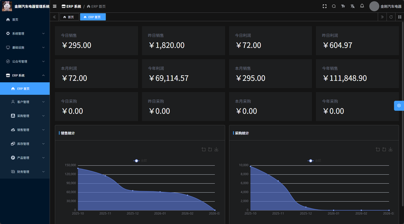 面向中小微商贸企业(批发零售、五金建材、食品日化等),解决传统手工记账 / Excel 台账效率低、订单 / 库存 / 财务数据割裂、账实不符、财务对账繁琐等问题,实现采购、销售、出入库、财务全流程数字化管理。