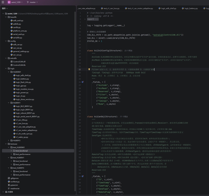 通过ctypes封装ControlCan.dll,Python代码可直接调用C动态库,实现高效稳定的CAN通信,无需额外开发中间件。