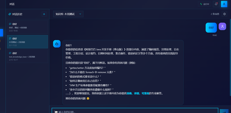 3)智能问答API:通过FastAPI提供RESTful接口,集成RAG检索增强生成,实现"先检索后回答"的精准问答;4)知识库管理后台:支持文档增删改查、检索结果重排序、问答历史追溯。系统实现了亚秒级响应(