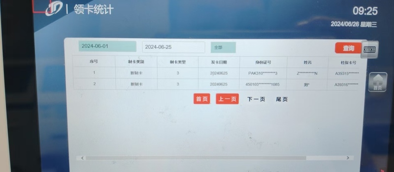 根据用户的业务需求调用机器的身份证识别器模块获取业务办理需要的必要数据或材料,然后进行人脸识别,识别通过后调用个人发卡信息采集查询功能,展示基本信息录入页面,根据信息一步步填写,确认无误后,调用个人发卡信息采集保存功能,展示打印预览页,设备进卡读卡,调用制卡三代卡调用RA接口获取制卡信息和CA信息。设备开始写卡印卡,调用制卡信息回传处理接口,调用社保卡启用接口,业务模块包括未成年人制卡,成年人制卡,社保卡补卡,社保卡挂失,社保卡激活等功能